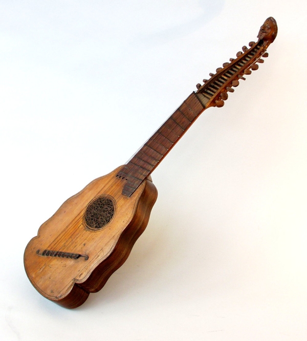 18 Metallsaiten drauf (9x2) und ist in Lautenstimmung. Schon ganz modern